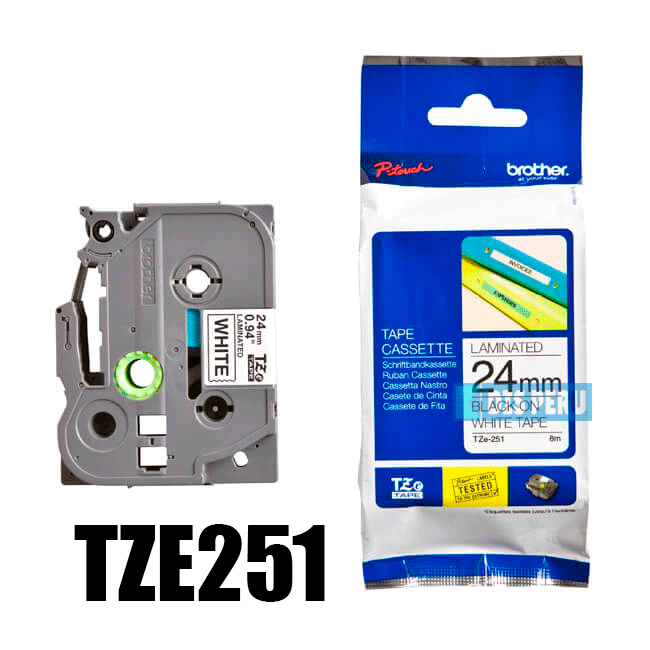 Cinta Brother TZe-251 – Etiqueta Negra sobre Blanco 1″ (24mm)