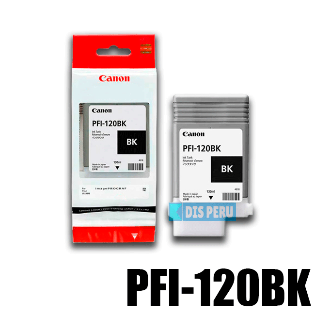 DIS PERU S.A. ofrece Tinta Canon PFI-120BK 130ml –... , garantizando productos 100% originales y nuevos, con respaldo de fábrica.