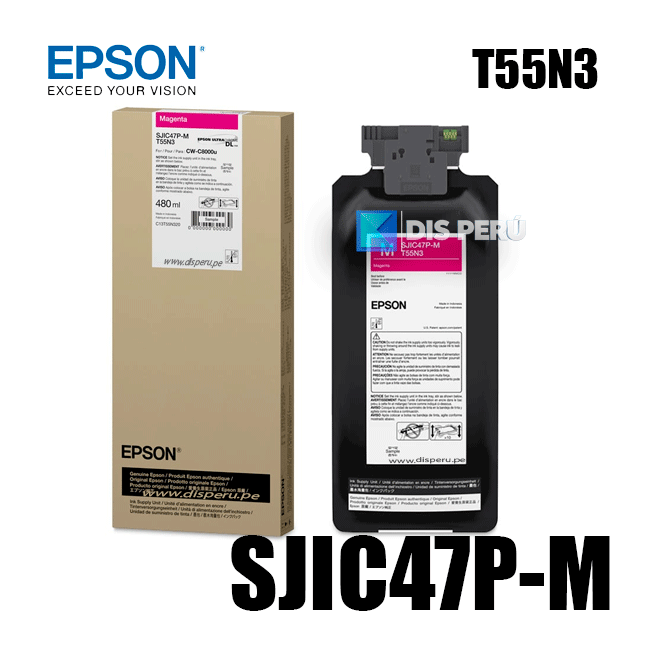 La Tinta Epson SJIC47P-M / T55N3 Magenta UltraChrome DL 480ml es un consumible original Epson diseñado específicamente para la Impresora de Etiquetas Epson ColorWorks C8000 (Modelo C31CL02101). Esta tinta pertenece a la serie profesional UltraChrome DL, desarrollada para ofrecer impresiones de etiquetas con colores intensos, alta precisión y excelente durabilidad.