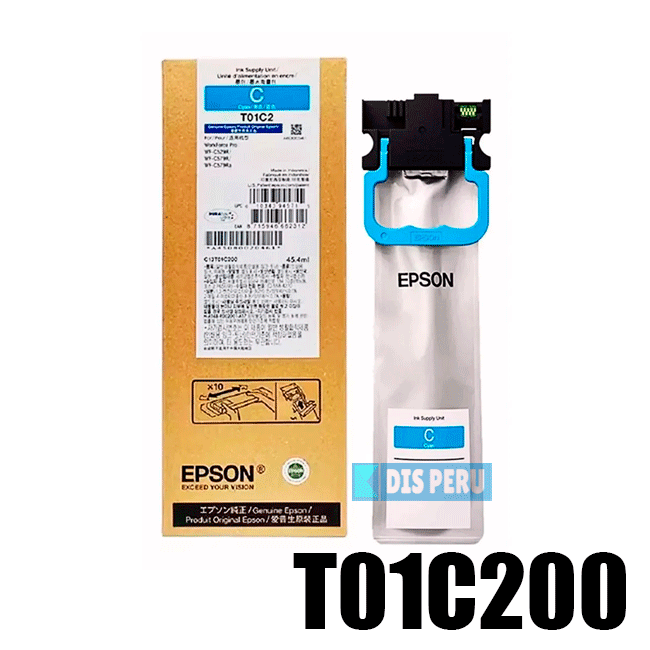 Tinta Epson T01C200 Cyan Original (T01C2) – Compatible con WorkForce Pro WF-C579RDT | Envío Rápido y Garantizado en Lima