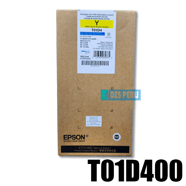 Asesoramiento en tus compras.DIS PERU S.A. ofrece Tinta Epson T01D400 Yellow ... , garantizando productos 100% originales y nuevos, con respaldo de fábrica.