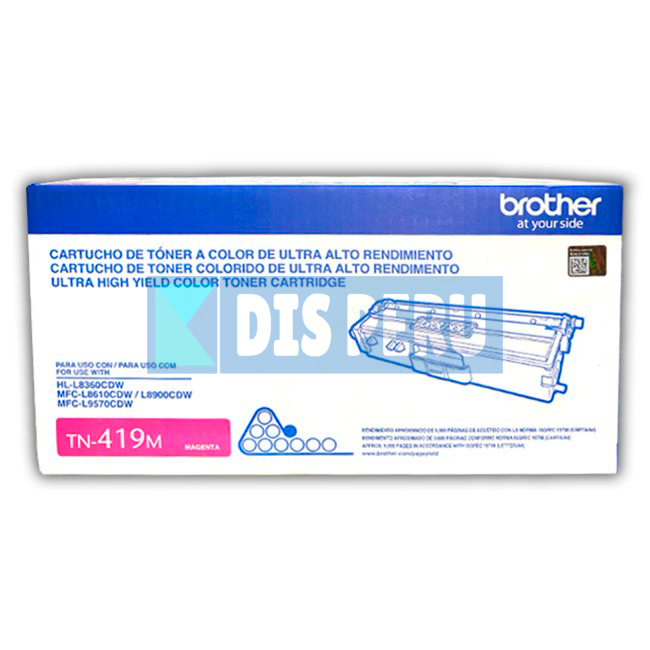 Aprovecha la calidad y rendimiento superior del tóner Brother TN-419M con la confianza que te brinda DIS PERÚ , tu aliado de confianza en soluciones de impresión.
