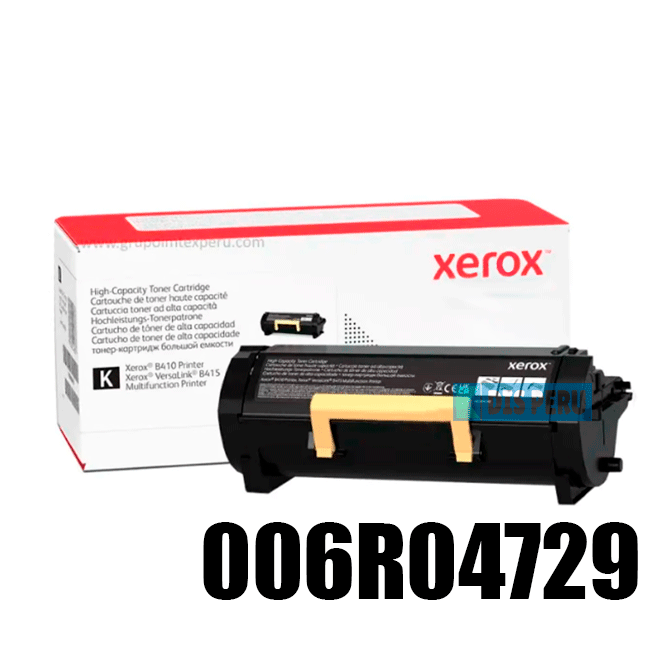 Si estás buscando un tóner original Xerox para tu impresora Xerox VersaLink B410 o B415, el modelo 006R04729 es la mejor opción. En DIS PERU, somos distribuidor autorizado Xerox, garantizando que todos nuestros productos son 100% originales y cuentan con garantía.